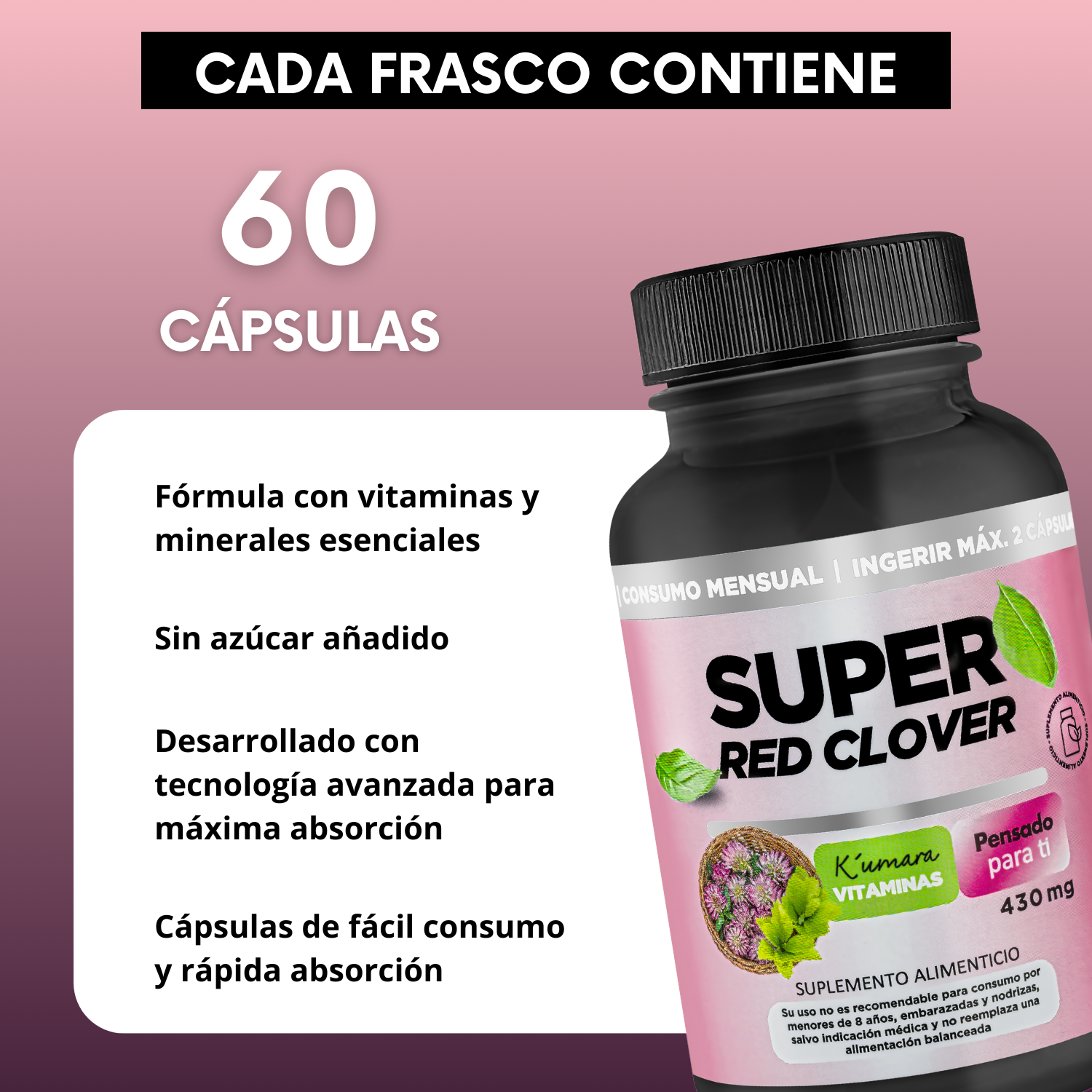 Super Red Clover está formulado para la mujer que necesita más energía y ánimo para enfrentar la rutina. Su fórmula está potenciada con isoflavonas, que poseen una estructura similar a los estrógenos humanos, proporcionando beneficios a la mujer en la menopausia.